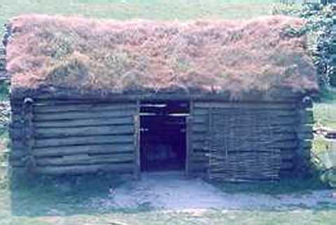 Studies on the origin of various metals were carried out from an early day and courses were also undertaken. This was done in an area called "smoky hollow" by staff , helpers and visitors alike ... for obvious reasons. The picture above shows the metal workers rectangular "shed", based on the use of split tree trunks and the on-