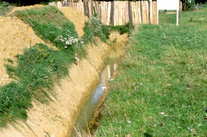 Another interesting "find", during construction of the earthworks, was the presence of a field drainage system using earthenware pipes, a common improvement of poorly drained farmland, remembering that the winter water table is barely sub-