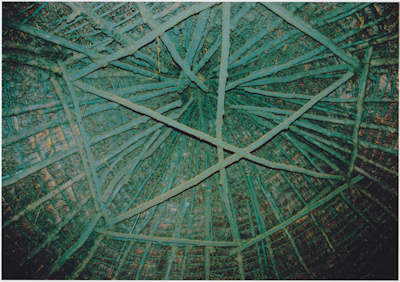 During the summer of 2006, it became apparent that the roof was adopting a rather curious shape. The whole roof appeared to be pushing forwards from the back towards the porch. Close inspection of the inside of the roof revealed that some of the joints on the inner ring had ruptured, allowing some of the uprights to lean and that some of the rafters had become bowed giving the unnatural external appearance. The hexagonal upper ring had become distorted as it resisted the movement in the roof.