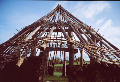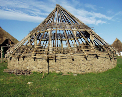 The twelve posts used to build the inner ring were ash as were the components of the ring beam. The walls were of oak stakes with some seven hundred 3 m long hazel rods providing the wattle. The daub was a mixture of clay, dung, soil and fibre -