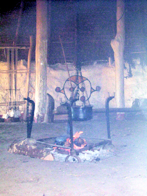 In order to provide the visiting public and schoolchildren with a visual image of how the interior of a roundhouse might have looked, it was decided that this roundhouse, unlike the Longbridge Deverill, should be ‘dressed’. When the great house was built archaeological evidence for the internal arrangements of roundhouses was scarce. Some ten years later, excavation techniques were more sophisticated and more data had been recovered and processed. Therefore the interior of the Moel y Gerddi roundhouse was decorated and furnished in the style and method of the middle to late Iron Age using excavation data and applicable literary sources. David Freeman from Gallica was particularly helpful.