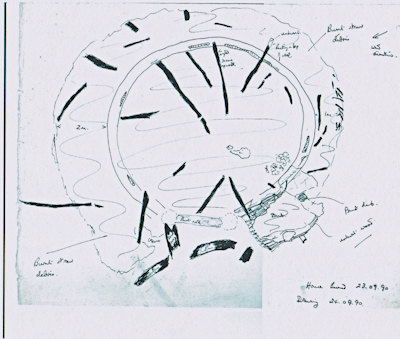 When this site was abandoned in 1990, it was decided to burn one of the houses to see how long it took to burn and what would remain. This was recorded on a video which is lodged with the Archaeological Data Service and by camera.