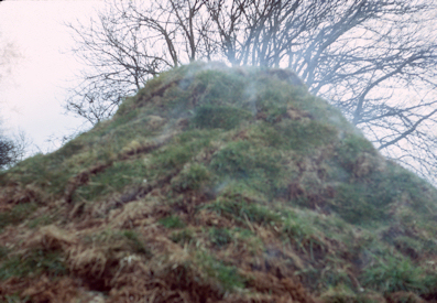 The construction details need not detain us here, other than to explain that a turf house with a turf roof needs a fire permanently burning inside to maintain the roof structure. The turves are put on in two layers – the first grass downwards, and the second, sealing the joints of the first layer, grass uppermost. The object of the fire is to provide sufficient temperature in the roof space to encourage grass growth and therefore rooting of the upper layer. The roots thus hold the roof together. It was impossible to maintain a permanent fire within this house and it was decided to allow it to collapse and monitor the collapse over a number of years. Within months the roof fell in and the wall began to deteriorate. At present it looks rather like a robbed-